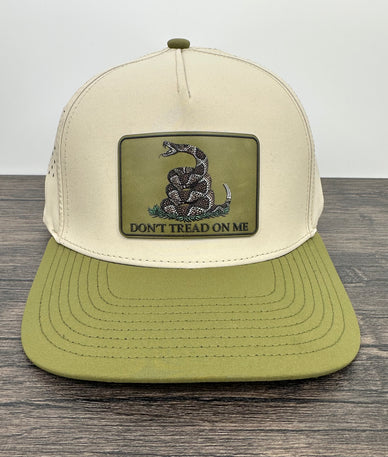 Make a bold statement with this premium Durra-Bull trucker hat featuring the iconic Don't Tread on Me Gadsden flag patch. This water-resistant and sweat-proof cap combines American heritage with high-performance functionality for patriots and outdoor enthusiasts.